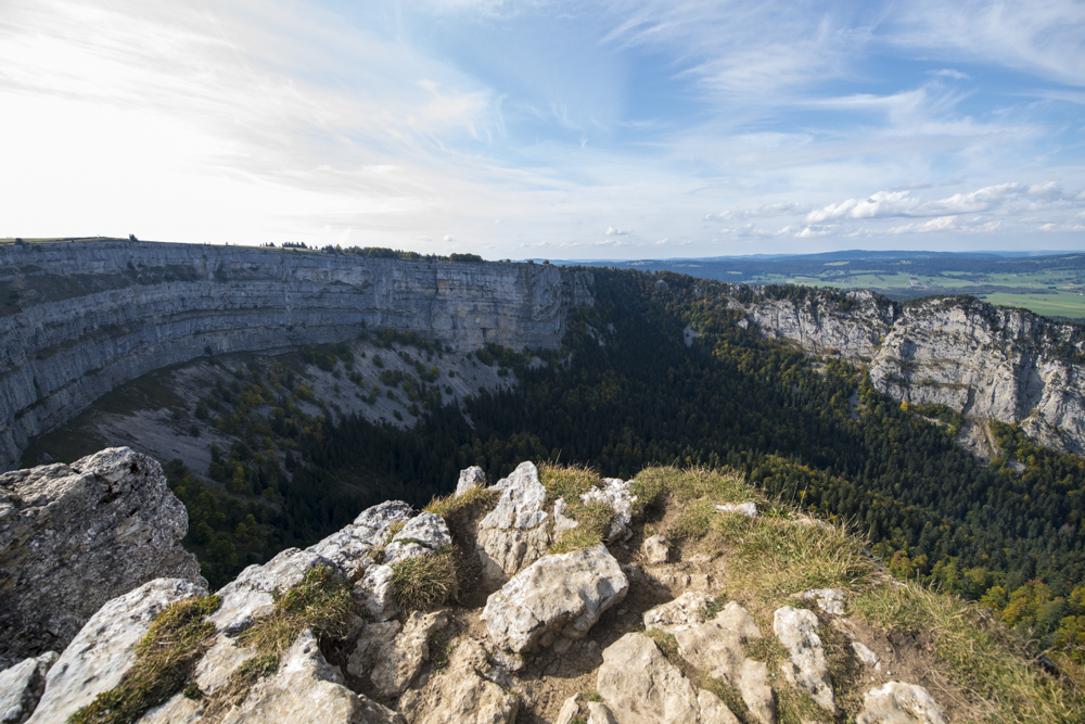 Landschaft, TiereCreux du Van Posted on 17. September 201717. Februar 2019 by PatrickDer Grand Canyon der Schweiz und die Steinböcke.Weitwinkel mit der vollen Wand.Ein kleine Gruppe von Steinböcken noch oben auf dem Plateau.Wenige sind auf dem Abstieg auch noch über den Wanderweg gelaufen.Bei bestem Wetter die Wand von der Nordseite.